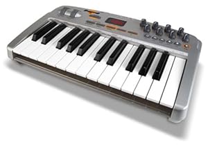 Feng Shui for your Digital Audio Workstation, October 7, 2006 - By The Information (United States) After 15 years using a Roland U-20 as a midi controller I began to wonder if upgrading would ever be needed. I figured all I needed was something that could trigger midi notes, and my old keyboard did that just fine. Then one day recently I saw a live band using a little 25 note controller to trigger Combinator patches out of Reason, connected only by a USB cable. The little dials on the keyboard were being used musically to change various parameters of the sound. It then occurred to me that maybe I should take a hard look at what has happened in the last 15 years with Midi controllers.Escaping from my local retailer with M-Audio Oxygen 8 v2 in hand, I rushed home to see if these bells and whistles really mattered. Skipping the dated CD-ROM that came in the package, I downloaded the current M-Audio drivers using the World Wide Web. Driver installation was painless, and then I connected the hardware. After windows carefully chewed on three different hardware wizards it was all done. Not bad, although I have some sympathy for anyone who is not familiar with the Windows "Found New Hardware" wizard. Fortunately the documentation describes the procedure in detail. The creative session that unfolded over the next few hours is what prompted me to write this review. Long ago it was very difficult to pass "special" information over Midi. Users were forced to map out keyboards, sift through menus, and spend hours on configuration. Those days are over! With this current technology, mapping a function to a dial or button is a simple matter. Software like Cubase and Reason just ask for you to touch the dial you want to use. After you give the dial a little twist the software detects it and maps it to the function of your choice. I could not be more pleased with how well this works.The Oxygen 8 V2, which can be powered from USB, has 8 dials, 2 wheels, an LCD readout, and a number of buttons. Some of the included buttons are transport controls, so you can use the keyboard to play, stop, fast forward, rewind, loop, and record. This makes the midi recording functionality feel more like a Motif or Triton, allowing the user to take their eyes off the computer monitor. - By the end of the evening I realized my old Roland U-20 simply cannot take advantage of the latest features being offered by today's software. While this little 25 note keyboard is a lot smaller, it's incredibly functional, and takes up a very small footprint on my desk. With the octave button I can live without more keys. This installation has improved the Feng Shui of my workstation area, giving more features in a smaller space. When you first experience what its like to tweak a Reason or VST instrument with a physical dial, and have the software record you doing it, you will wonder why you waited so long to upgrade your giant old midi keyboard. It is truly frightening what can now be achieved with a laptop, a software program such as Reason 3, and an Oxygen 8 V2. You could sit in a coffee shop and be the next Aphex Twin. I recommend caffeinated.
